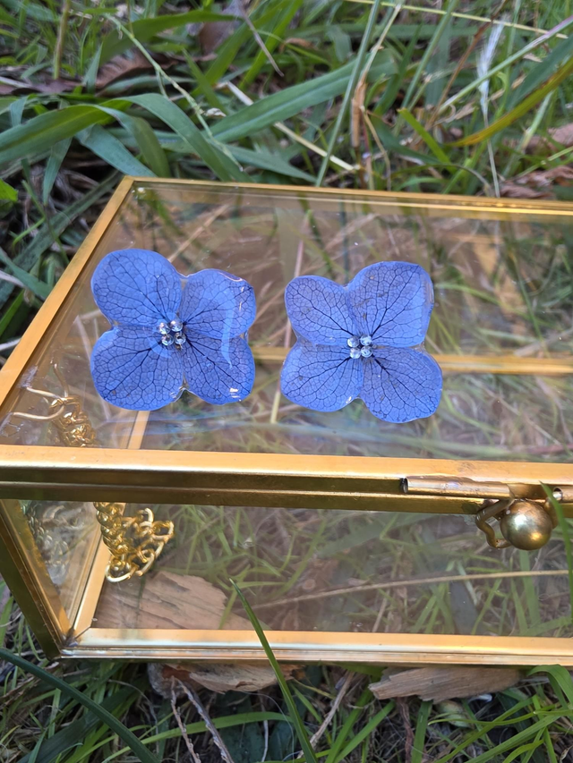 Bleu et strass or : H 2cm L 2.4cm (clou acier inoxydable couleur argent)