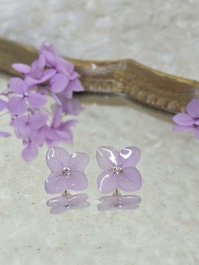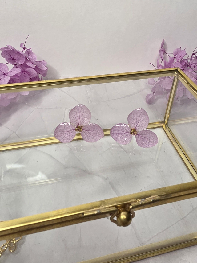 Des véritables hortensias séchées enrobée de résine.