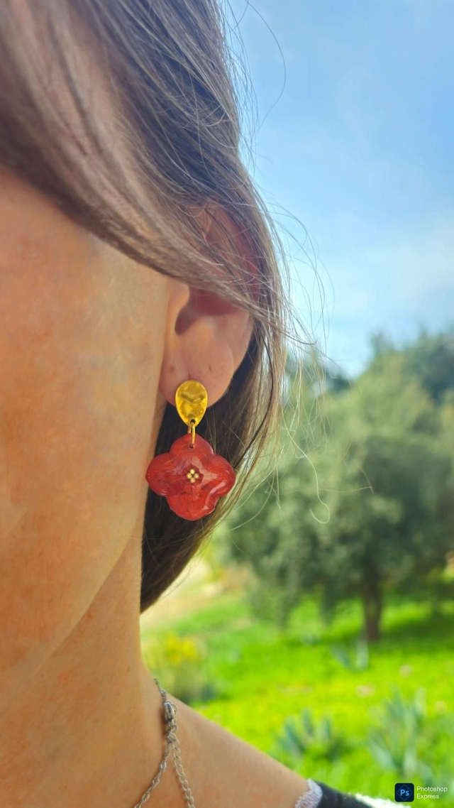 Terracotta strass or : H 3.4cm (avec l'attache) L 2.2cm (attache acier inoxydable couleur or)
