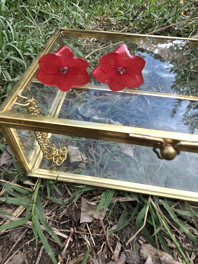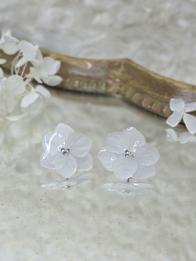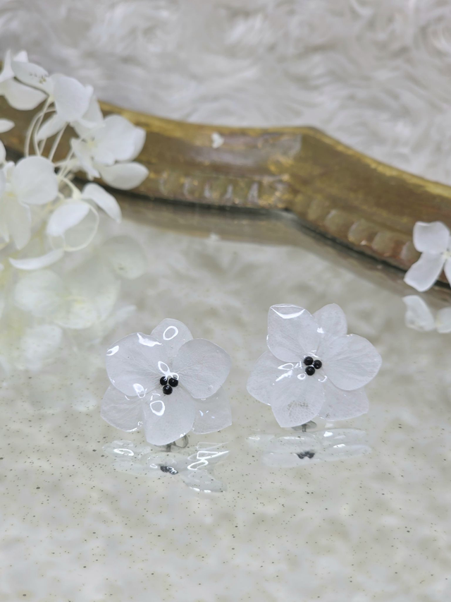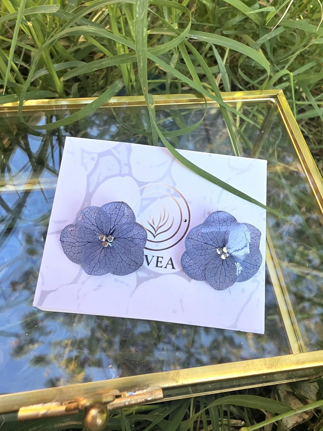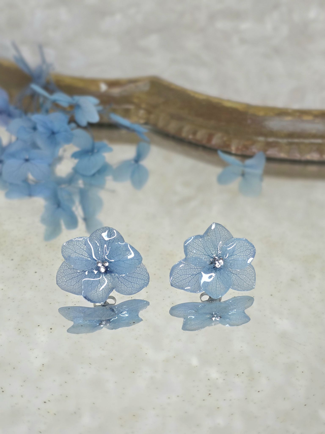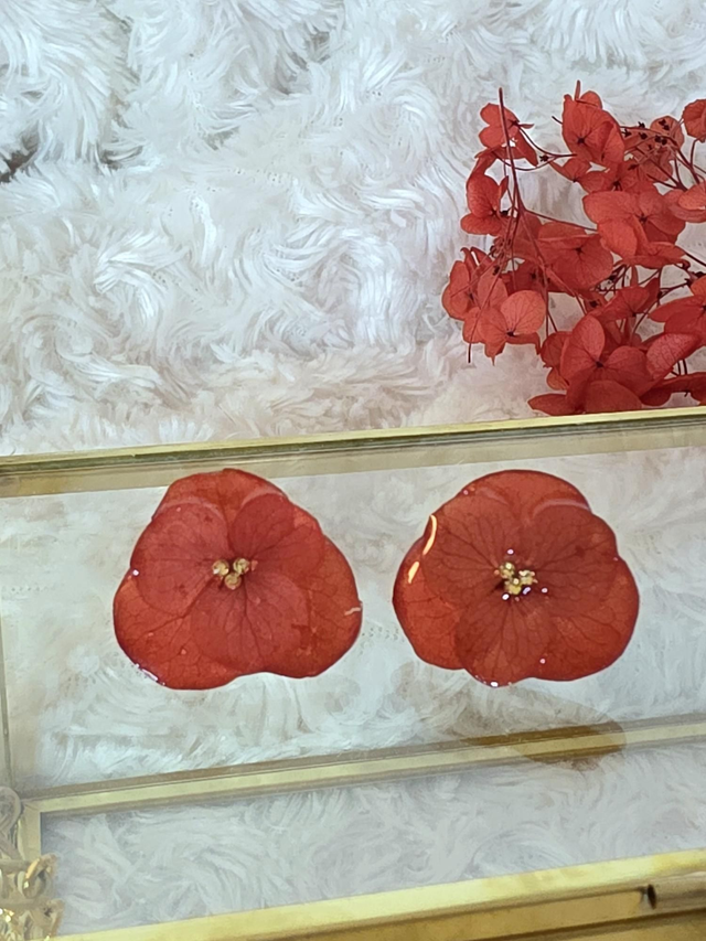 Des véritables hortensias séchées enrobée de résine.