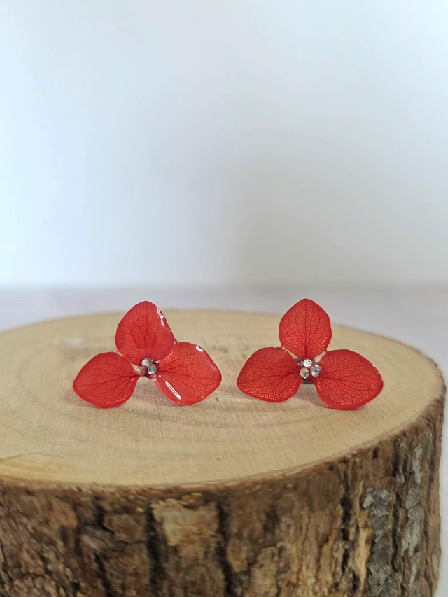 Des véritables hortensias séchées enrobée de résine.